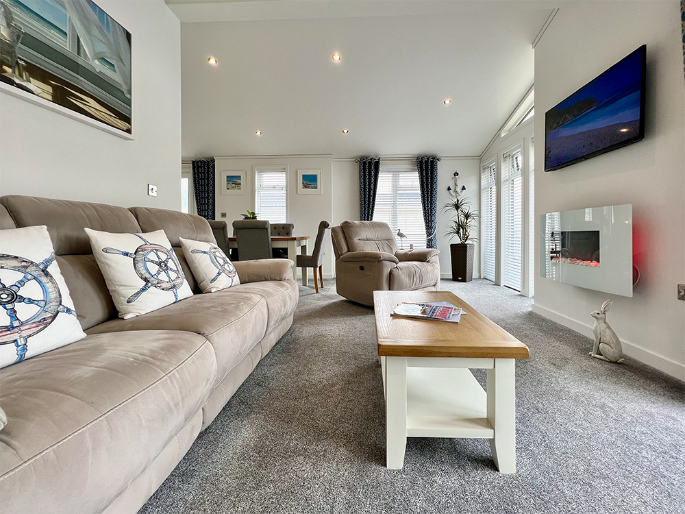 This 42’ x 20’ luxury Pathfinder Lighthouse park home in show home condition, occupies a prime position on a large corner plot within a new residential park development.