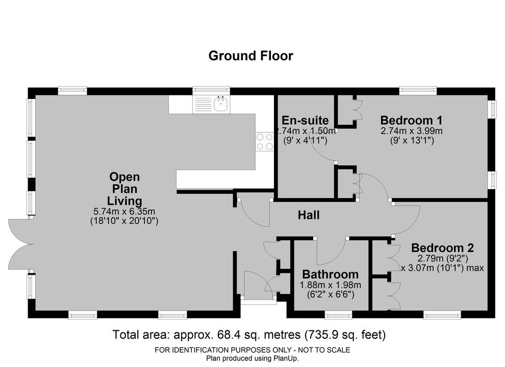 The home features two double bedrooms, including a main bedroom with en-suite, plus a separate bathroom. The bright open-plan lounge and dining area flows into a modern kitchen complete with integrated washing machine, dishwasher and fridge/freezer.