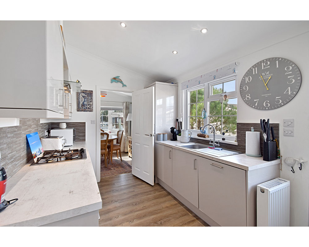 The spacious home is located close to the secure gated entry to the park and is located 5 mins walk from the lovely town of Whitland with shops, dentist, doctors and train station. The nearest beach is 15 minutes drive and Pembrokeshire coast is 25 minutes away. The home has vaulted ceilings featuring a L shaped lounge / diner, complete with Karndean flooring, blinds and curtains on all windows. Within the lounge diner there are also 4 double powers points one single as well as USB ports. Fully fitted kitchen complete with fridge freezer, washing machine,