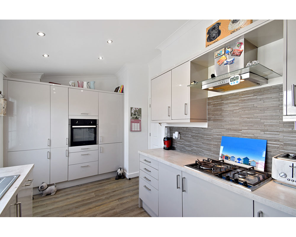 dishwasher gas hob and electric oven. Ample cupboard space and a Valliant