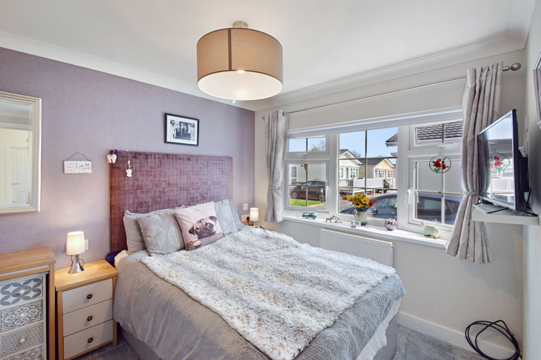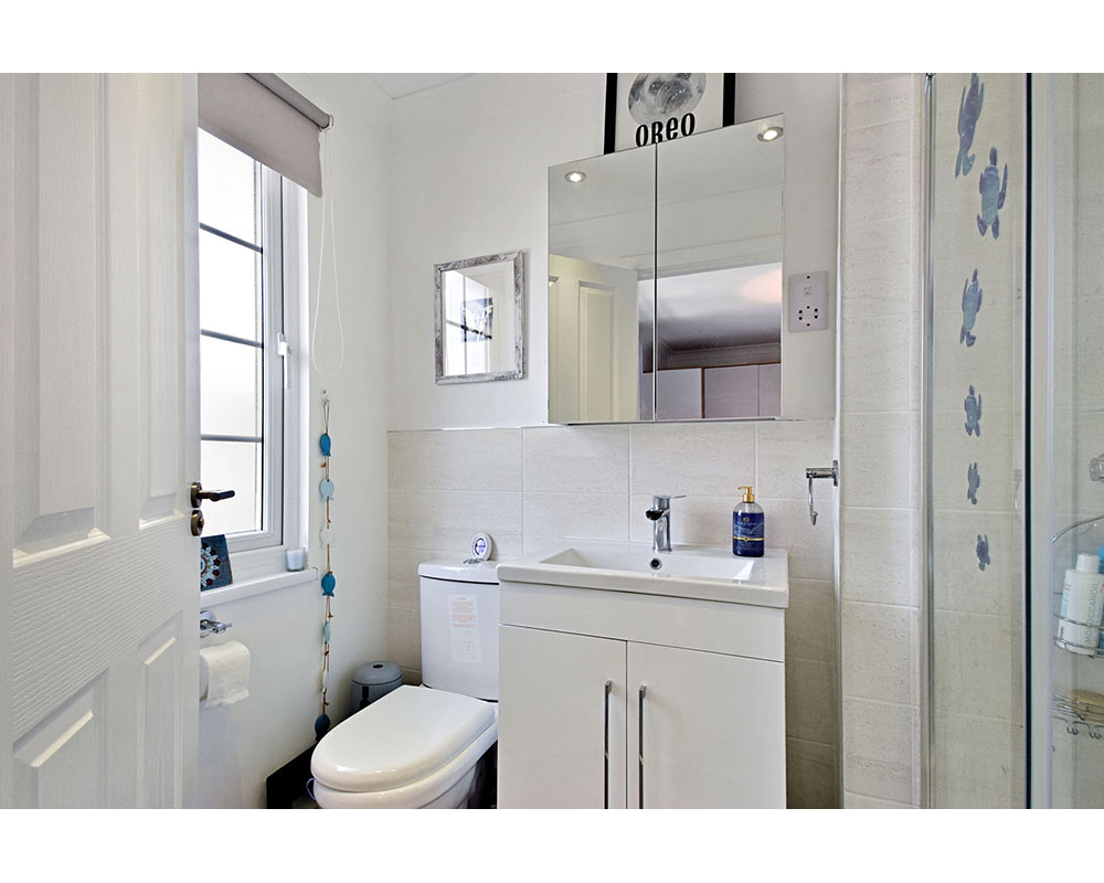 combi boiler Both bathrooms have showers and heated towel rails along with vanity unit storage. The home also has loft space as well as a cloak cupboard and airing cupboard located in the hallway. There is decking from the back door and around the front of the home with a fully fenced and landscaped garden including pebbles, patio and astro turf lawn with mature shrubs bushes and flowers. There is a shed complete with light and electric. For more images view the OnTheMarket advert The Park The park has approximately 50 homes, with secure gates operated by a fob.